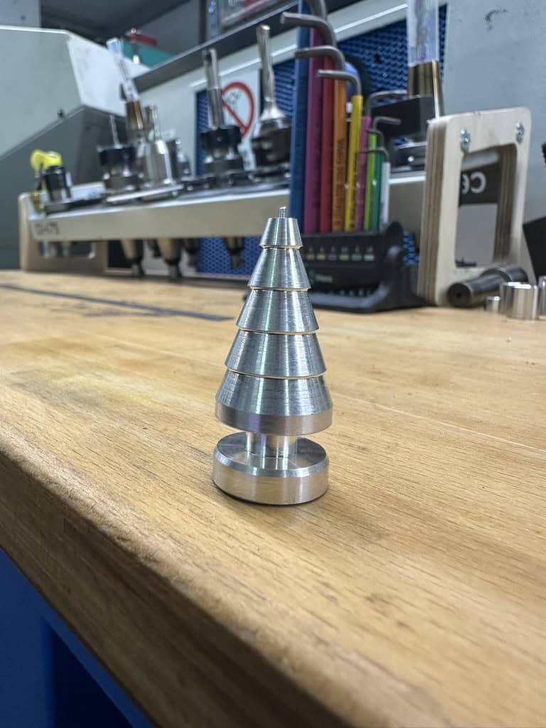 Klassiker beim Drehen, der Weihnachtsbaum. Hier noch mit einem kleinen Butzen anstatt dem korrekten Radius. Wir lernen ja noch 🙂